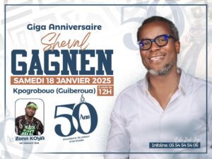 La fête à Sheval Gagnen pour célébrer un demi-siècle de vie, c’est ce week end, précisément le samedi 18 janvier 2025. La célébration se tient dans sa région natale, à Guibéroua, du côté de Kpogrobouo, à partir de Midi précise.