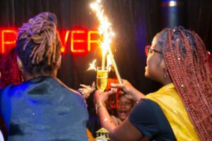 L’artiste chanteuse Rap Oprah, en guest star, a reçu un bel accueil à son arrivée dans le point show piloté par la tour de contrôle: Mister Joel Kanga et sa Team. Eux qui ont mis les bouchées doubles pour une réussite totale de la soirée Gold.